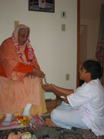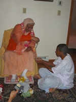 Srila Bhakti Sundar Govinda Dev-Goswami Maharaj chanting on beads.
