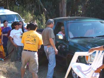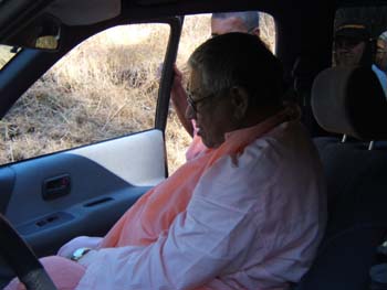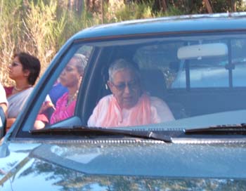 Srila Gurudev arrived in Hasya Priya Prabhu's truck.