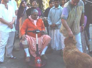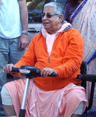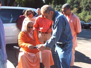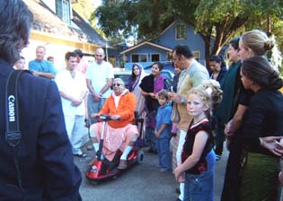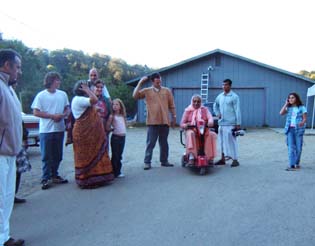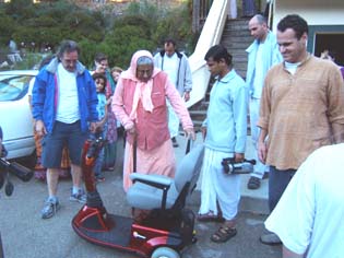 Gurudev rested at the bottom of his house for a while and talked about his "new car." He told Srutasrava Prabhu, his dedicated driver, that he now had his own car and could drive himself. |
