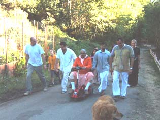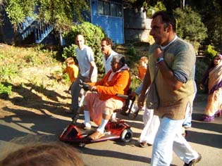 Didi, gave me the auspicious news. "Vaidehi! Gurudev is out on his scooter!