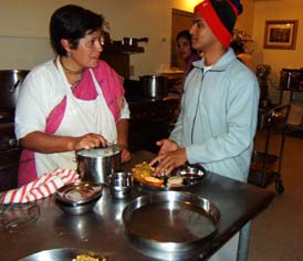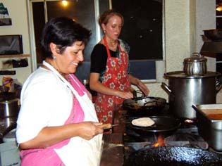 Each person helps with different tasks. Sureshvari Didi, the honored ashram resident and expert cook, makes breakfast for the devotees every morning. |