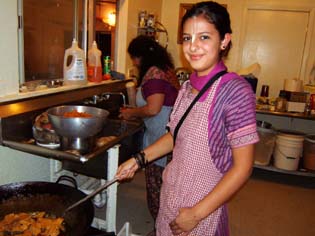 Lalita Didi, the daughter of Kirtida Didi, helps to prepare Gurudev's meals.