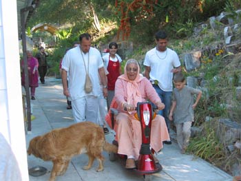 Srila Govinda Maharaj enters the temple to pay respects to the