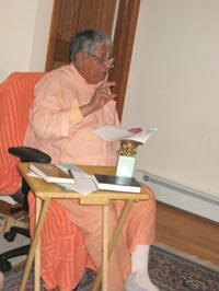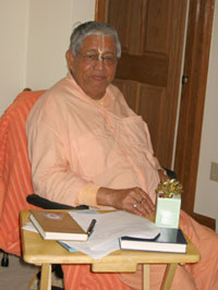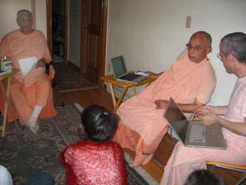 electronic books. Srila Govinda Maharaj holds the printout of the