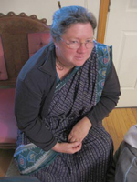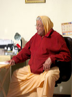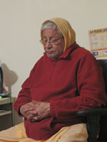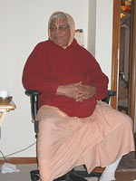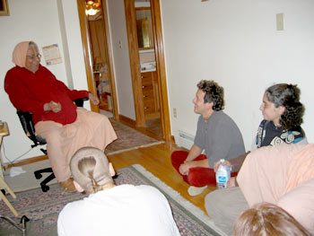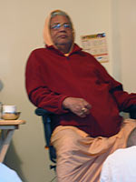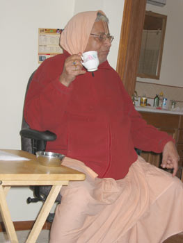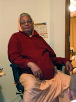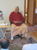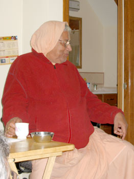 Didi joins the family gathering. At first she sits in the back, but Srila Gurudev