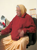 From time to time, Srila Govinda Maharaj appears to fall into a meditative state. He often says, "I am always thinking about Guru Maharaj's mission." The other night he was eagerly waiting for pictures from India that showed construction progress there.