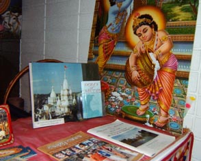 Upon entering, one first sees books about Krishna Consciousness, pictures of Krishna, and invitations to the preaching programs.