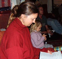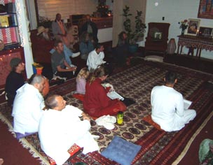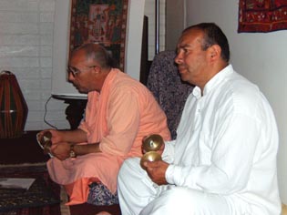 Every Friday night Sripad Janardan Maharaj arrives at the center to preach, answer questions, and sing bhajans.