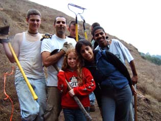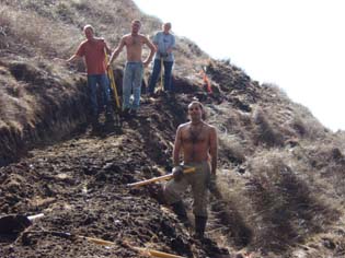 Here are several devotees that helped on the first few days of construction: digging, picking, hacking, and raking the dirt. |