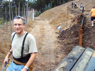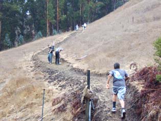 The first step was to plan the structure of the road, which turns it would need to safely reach the top. Second was to create a four-foot wide path for Gurudev's scooter and the line of devotees that would follow him. |