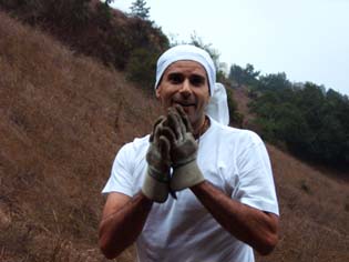 Isvara Prasad Prabhu from Venezuela is visiting for a few days and dedicates all his energy to Gurudev's instructions. |