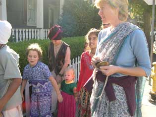 Madhumati Didi, Braja Mohini Didi, Revati Didi, Sita Didi and several other ladies gathered their children for a special way to celebrate Halloween. They would lead their own harinam party!