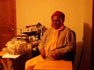 Later that night, before the kids went trick-or-treating, Srila Govinda Maharaj passed out candy. Even the adults went to His lotus feet, saying "Trick or treat Gurudev!" He smiled and gave us Laffy Taffy, Crunch Bars, and Kit Kat bars.