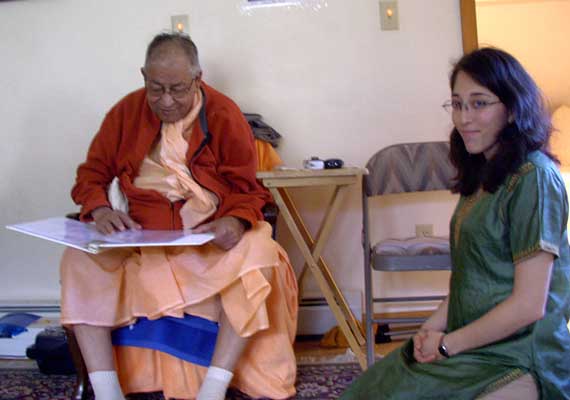 | With the editor of the Vyasa Puja book, Vrndavanesvari Didi. Gaurahari Prabhu of California designed both volumes, and a PDF version of all offerings will be available on the Internet soon. |